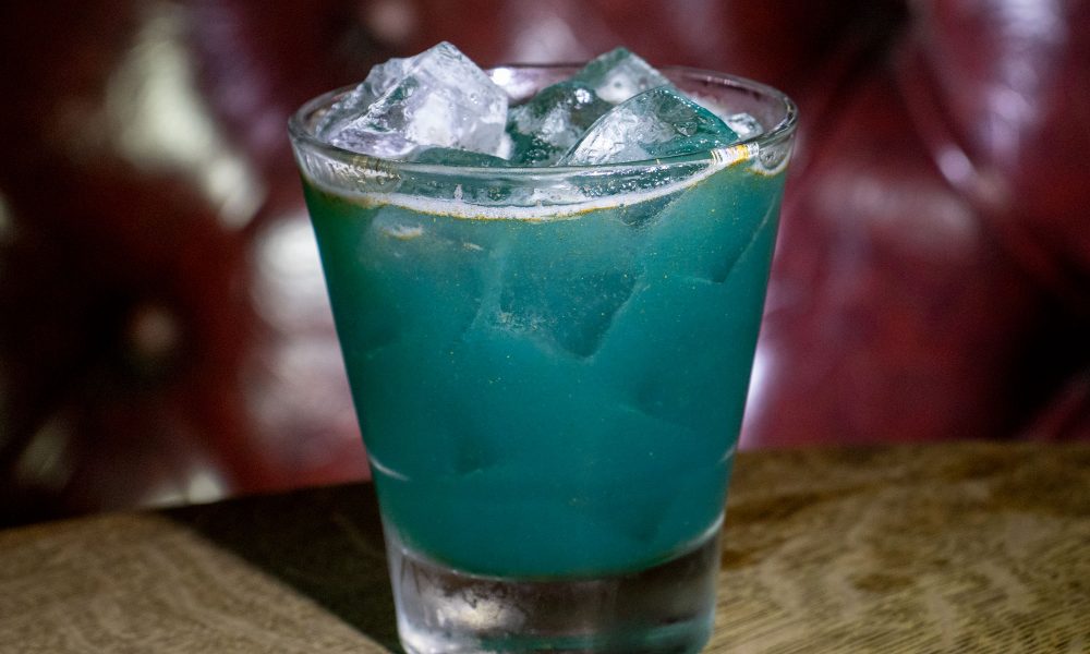 rum, lemon, honey, bitters, yuzu curaçao, blue curaçao