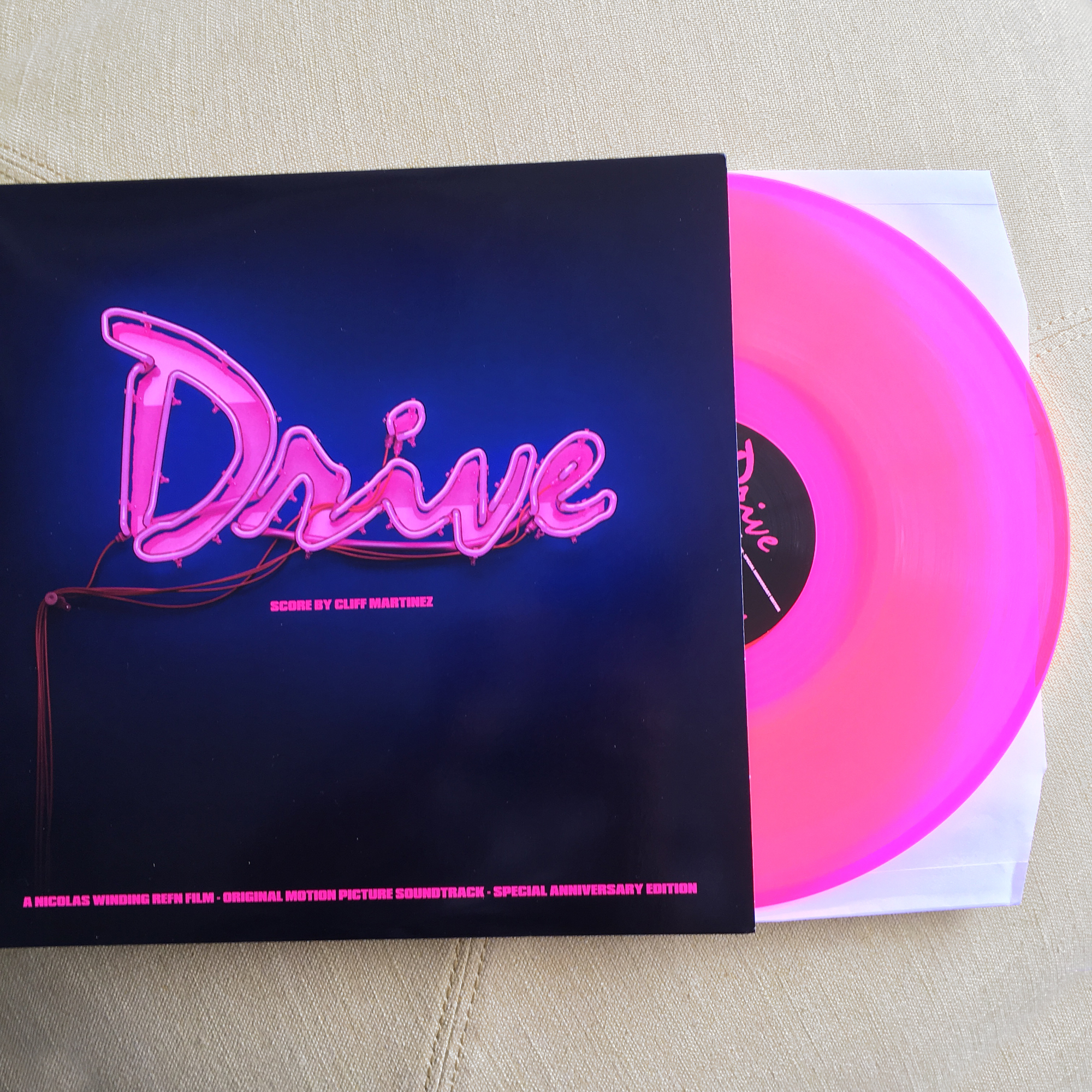 One lucky winner at the Friday midnite screening of DRIVE will receive a limited edition, neon pink vinyl DRIVE soundtrack courtesy of Vehlinggo.